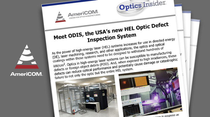 Meet ODIS, The Army/Optimax advanced HEL Optics Defect Inspection System; New ISO standards sharpen laser damage testing for HEL optics; Optimax on pulsed HEL; and Valencia College’s short-course model changes lives in Central Florida, and AmeriCOM research at Optifab.